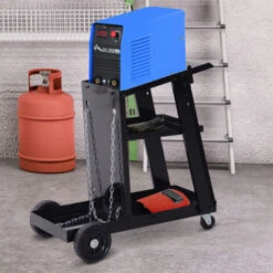 DURHAND Carrello Da Officina Porta Impianto Di Saldatura 3 Ripiani 4 Ruote Nero
