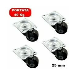 WD SET 4 MINI RUOTE IN GOMMA 25 Mm CON SUPPORTO METALLICO SU CUSCINETTO PORT. 40 Kg