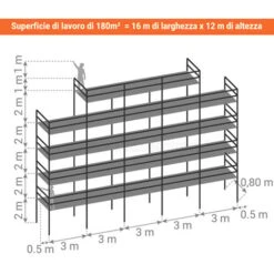 Trabattello Fisso 180m² – Struttura + Pedane – Versione Asta – DUO180-S