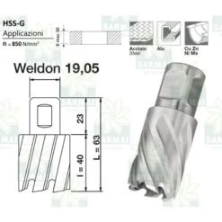 Krino Fresa A Carotare Diametro 24 Serie Lunga 60 Mm Attacco WELDON Per Metallo Acciaio