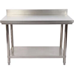 Tavolo Di Lavoro In Acciaio Inox Con Bordo Di Protezione 120 X 60 X 85 Cm