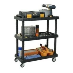 CARRELLO 3 RIPIANI PIANI PORTA ATTREZZI UTENSILI OFFICINA GARAGE RUOTE 723