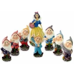 Sette Nani In Poliresina Da Giardino Nanetti Di Biancaneve Per Aiuola H 28 Cm -Cucciolo