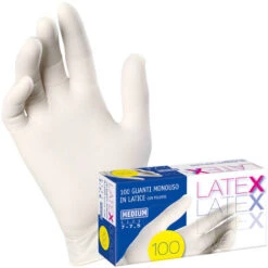 GUANTI MONOUSO FP IN LATTICE TG. S 100 PZ. BIANCHI CON POLVERE