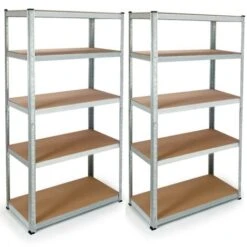 Set Da 2 Scaffali Metallici Con 5 Ripiani Da 875kg Misure 180x90x40cm Galvanizzato