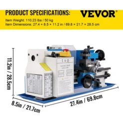 VEVOR Mini Tornio In Metallo A Velocita Variabile 7″ X 12″ Con Lampada Mobile