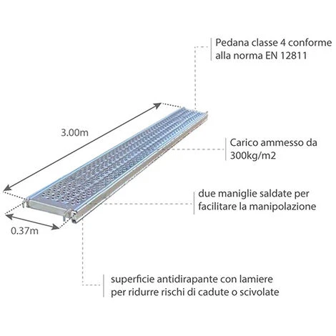 – Carico ammissibile fino a 300kg/m2, ideale per i carichi pesanti: materiale da lavoro in cantiere.