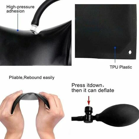 - [Resistente e sicuro] Design stampato in TPU a doppia faccia per una maggiore resistenza all’abrasione. Resistenza alla compressione superiore per sollevare fino a 220 libbre. Ci sono due cunei d’aria in questo kit. Usandone due insieme, puoi sollevare oggetti fino a 440 libbre e puoi sollevarli in modo più stabile e sicuro. #39;un pulsante. Quando è completamente sgonfio, ha uno spessore di soli 1,5 mm, facile da installare a breve distanza, maggiore usabilità e comfort di stoccaggio. rendendo più facile incunearsi negli spazi senza troppa forza.