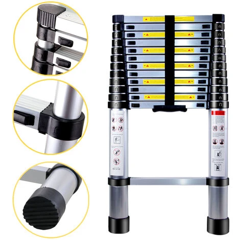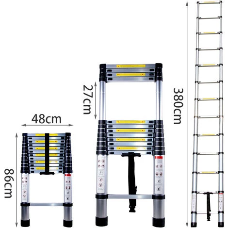 •La scala telescopica in lega di alluminio da 3,8 m è robusta e resistente, con una capacità di carico di 150 kg.