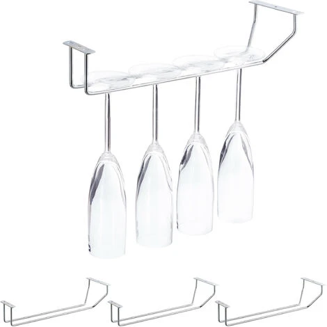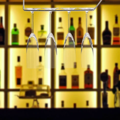 Su questi binari da parete salvaspazio e in acciaio inox decorativo per la cucina potrete appendere fino a 4 bicchieri di vario tipo: flut, calici da vino e bicchieri da birra. In questo modo avrete i calici sempre a portata di mano per e senza ingombrare la vetrinetta della vostra cucina. Il supporto richiede un montaggio a soffitto, tuttavia è ideale e decorativo se fissato sotto un armadietto da cucina o al bar.