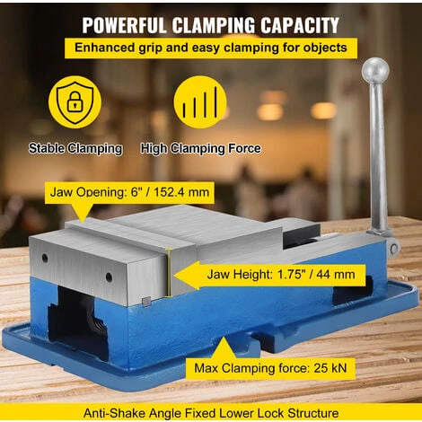 - Potente Forza di Serraggio: le superfici delle guide della morsa sono finemente levigate e lisce. Quando si blocca il pezzo, il movimento è stabile, il posizionamento è accurato. Larghezza della mascella: 6″/15,2 cm, apertura della mascella: 6″/15,2 cm. La forza di chiusura può raggiungere fino a 29 kN, adatta a merci di diverse dimensioni.
