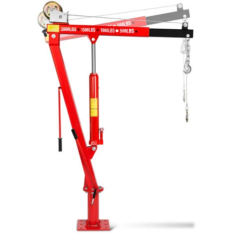 La gru può essere facilmente montata su quasi tutte le superfici solide. Montata sul pianale di carico del veicolo o rimorchio, può essere utilizzata ovunque il veicolo si trova. A seconda della regolazione gru, la capacità di sollevamento è di 110 kg (estesi) o max. 900 kg (rientro). Utilizzando la catena in acciaio e il gancio di carico attaccato alla gru, carichi possono essere prelevati direttamente dal terreno e sollevato ad unaltezza 1900 mm (altezza del gancio). Largano a mano robusta, così come la torre rotante vi supporta con un 360°.
