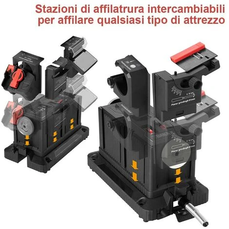 5 adattatori per l’affilatura intercambiabili con meccanismo a scorrimento