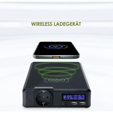 - 【5 uscite incluse caricabatterie wireless】: la centrale elettrica portatile Allpowers è dotata di un pacco batteria agli ioni di litio da 154wh. La fonte di alimentazione portatile è dotata di 1 porte CA (220 V/50 Hz), 2 porte USB, 1 porta di tipo C (associa automaticamente la tensione in base al dispositivo) e un caricabatterie wireless (il generatore solare portatile supporta la maggior parte degli smartphone dotati con tecnologia QI standard o altri dispositivi abilitati al QI).