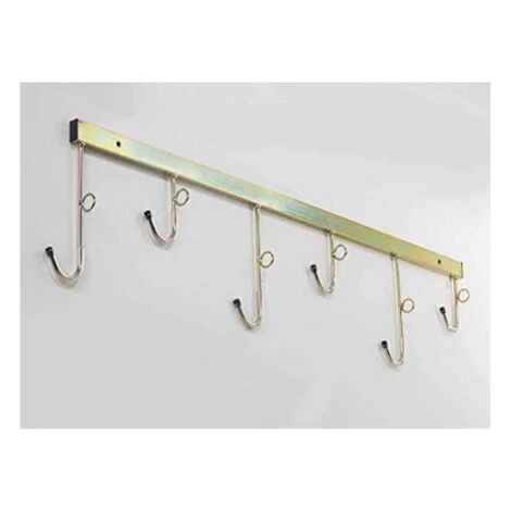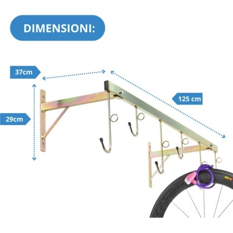 Porta bici a parete sia per esterni sia per interni, con anelli per agganciare il lucchetto antifurto, per sei Biciclette. Il Porta bici è smontabile, ed è dotato di tappi in pvc neri.