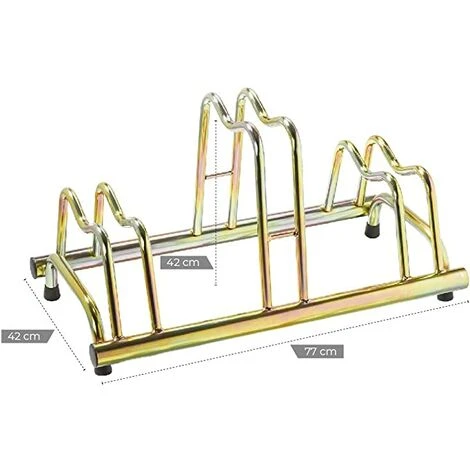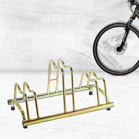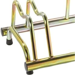 Porta bici a terra per tre Biciclette, anche con freno a disco, con tappi in pvc neri. La funzione di questo Porta bici è di fare da collegamento tra art. 1103 G a art. 1105 G; avendo le conifiche in entrambe le parti permette di collegarsi formando un unico Porta bici. La curvatura superiore è un sistema brevettato dalla ditta Andrys srl per sistemare anche le Biciclette con freno a disco.