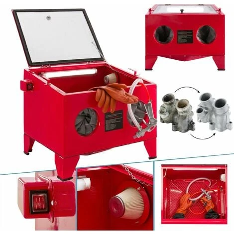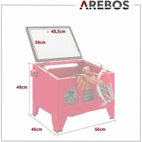 La cabina di sabbiatura AREBOS da 90 litri è il dispositivo ideale per la lavorazione di pezzi di medie e piccole dimensioni. Il suo impiego è universale (settore industriale, automobilistico, riparazioni, restauri, hobby…)