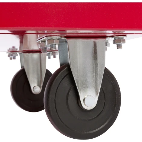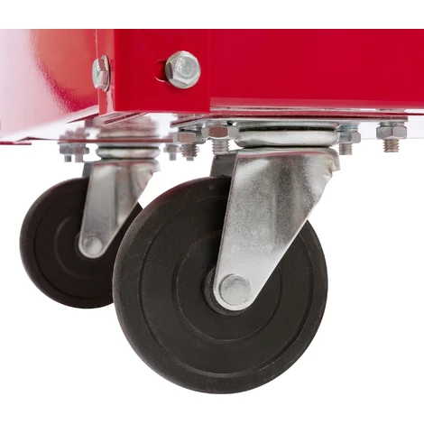 Due rotelle orientabili e due rulli in plastica compatta assicurano grande mobilità al carrello porta-attrezzi, che potrà essere spostato con facilità grazie alle maniglie montabili su entrambi i lati. Ciò lo rende versatile ed adatto a qualsiasi officina