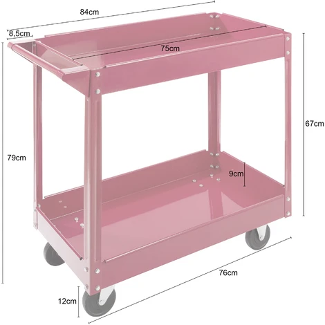 I tre ampi ripiani da 84 x 41 x 79 cm sono ideati per ospitare una vasta gamma di attrezzi ed utensili. La capacità di carico massima di 100 kg fa sì che anche gli utensili pesanti non rappresentino un problema per questo carrello porta-attrezzi.
