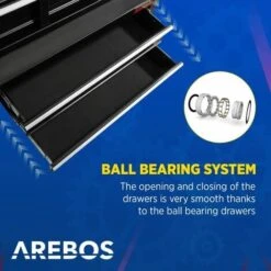 Il carrello da officina AREBOS è fatto di acciaio robusto. Puoi ordinare in modo ottimale i tuoi attrezzi nei cassetti estraibili. I cassetti sono montati su cuscinetti a sfera e quindi si aprono e si chiudono molto delicatamente. Sono dotati di una funzione di blocco per impedire l’apertura automatica. Gli inserti antiscivolo mantengono gli strumenti in ordine e puliti.