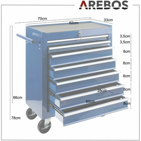 - Il nostro carrello da officina AREBOS è dotato di un totale di 7 cassetti