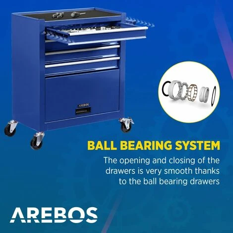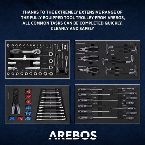 - Il nostro carrello da officina AREBOS è dotato di un totale di 4 cassetti e di un ampio vano portaoggetti