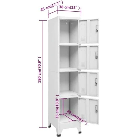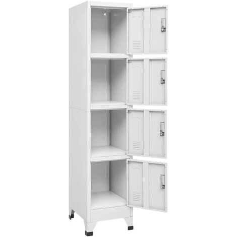 Dotato di 4 scomparti con sportelli chiudibili a chiave, questo armadietto ha ampio spazio per riporre al sicuro abiti e altri oggetti personali. Ogni scomparto è dotato di una targhetta portanome. Questo armadietto è realizzato in acciaio di alta qualità che lo rende resistente e facile da pulire. L’assemblaggio è molto semplice. Il montaggio è davvero facile.