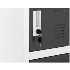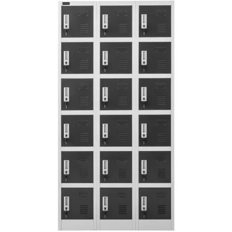 Grazie alla sua solida struttura e agli scomparti con 18 serrature zincate, l’armadietto spogliatoio è un elemento d’arredo indispensabile in ogni ufficio, officina e biblioteca. I singoli scomparti misurano ciascuno 298/250 x 425 x 293 mm e possono sopportare un carico totale fino a 200 kg. Ogni armadietto è dotato di due chiavi in lega di zinco resistente per proteggere il contenuto degli scomparti da accessi non autorizzati. Pratico: grazie agli specchi e ai ganci, su ognuna delle 18 porte zincate, questo armadietto è perfetto anche come armadietto per riporre i vestiti. Inoltre, i fori di ventilazione assicurano una circolazione ottimale dell’aria.