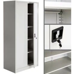 2 manigliette, elementi fissanti, 3 fermi ante e arresto battente Armadio Tuttopiani IRON Smontato 60X40 H180 Altezza (mm.): 1800 Larghezza (mm.): 600 Profondità (mm.): 400 In metallo verniciato grigio componibile