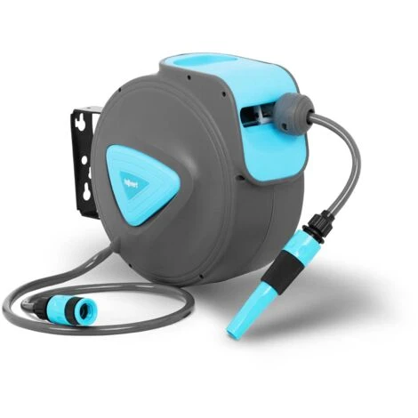 Puoi dimenticarti di tubi flessibili ruotati e fastidiosi garbugli poiché l’avvolgitubo garantisce il massimo ordine. Grazie al design intelligente dell’avvolgitore, il tubo flessibile viene arrotolato quando rientra. Quando invece il tubo si srotola, il tamburo scatta due-tre volte per metro, così puoi sempre svolgere la lunghezza del flessibile desiderata. Per il riavvolgimento automatico è sufficiente tirare il tubo una sola volta, quindi questo verrà automaticamente riavvolto fino all’arresto.