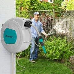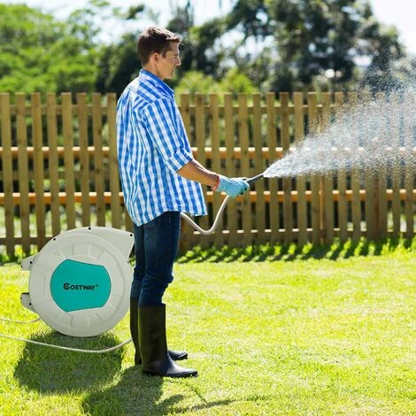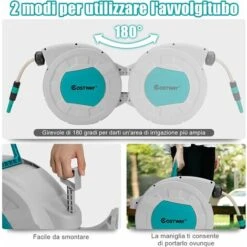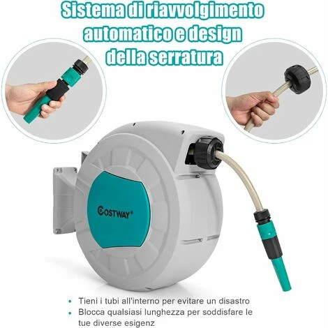 Il nostro avvolgitore per tubo è la soluzione perfetta per innaffiare! È montato al muro e il tubo è lungo 19,5 m così puoi innaffiare il giardino o lavare la macchina. Se pensi che l’area che innaffia sia limitata, puoi girarlo a 180° e innaffiare in altre direzioni. Inoltre, ha un sistema di riavvolgimento automatico e si può bloccare a qualsiasi lunghezza. Si sposta facilmente ovunque con la maniglia. Misura 52 x 20 x 39 cm ed è perfetto per case piccole. Compralo subito!
