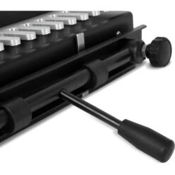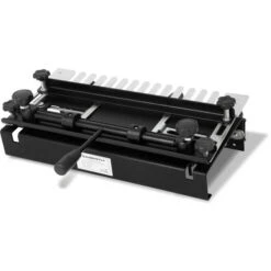 La fresatrice a denti funge da dima e viene utilizzata insieme ad un router. È compatibile con tutti i router da 1/2 e 1/4 di pollice disponibili in commercio. Grazie al suo peso e alla possibilità di montarlo su un banco di lavoro, i giunti a coda di rondine non sono un problema. Il dispositivo è dotato di 2 morsetti rapidi per una rapida e facile rimozione dei pezzi in lavorazione. Che si tratti di giunti a denti, a coda di rondine o altri dipende dalla sagoma di fresatura che è intercambiabile con questo dispositivo. La fornitura comprende un modello già preassemblato.