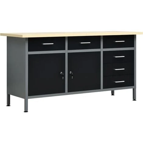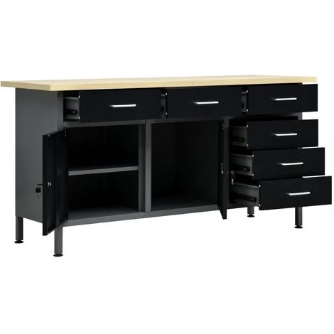 Il tavolo grande e robusto offre una piattaforma stabile per tutti i lavori di riparazione. Il banco da lavoro ha 6 cassetti, che consentono di organizzare bene strumenti, parti e accessori come viti, chiodi e nastro adesivo. Tutti i cassetti sono dotati di meccanismo a sfere per uno scorrimento liscio. Include anche scomparti adatti per utensili più grandi, i 2 armadietti chiudibili a chiave, che possono ospitare facilmente trapani, tamburi per cavi e smerigliatrici.