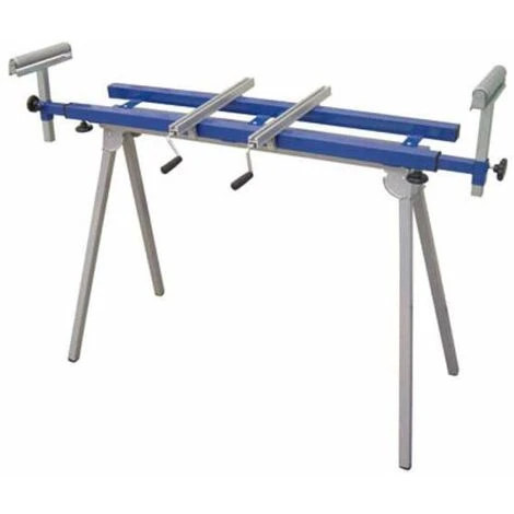 Banco pieghevole troncatrici Modello universale con staffe regolabili, Rulliere regolabili in altezza e larghezza