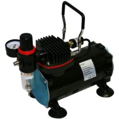 La soluzione intelligente: il dispositivo ideale e ad alte prestazioni per tutti i lavori sia per i principianti che per i professionisti. Ideale per i lavori di modellismo, la ceramica, la cosmesi, la manicure pedicure, i caschi, le riproduzioni tecniche, la concia, il tatuaggio, il tessile, il NailArt, i lavori con vernice ad acqua o per qualsiasi lavoro semplice. Leggero e facile da trasportare. Molto silenzioso, con solo 47 dB. Il compressore è completamente automatico e praticamente privo di vibrazioni. Funziona senza olio, e quindi senza aria inquinata. Con filtro ad acqua, regolatore di aria compressa e manometro.