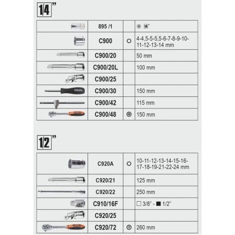 C900 – Set 13 bussole esagonali 1/4″