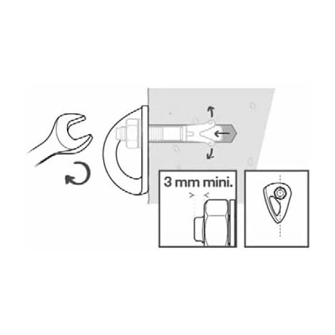 Piastra di sospensione per punti di ancoraggio permanenti. Occhiello di fissaggio progettato per due moschettoni, massima resistenza al carico: 25KN.