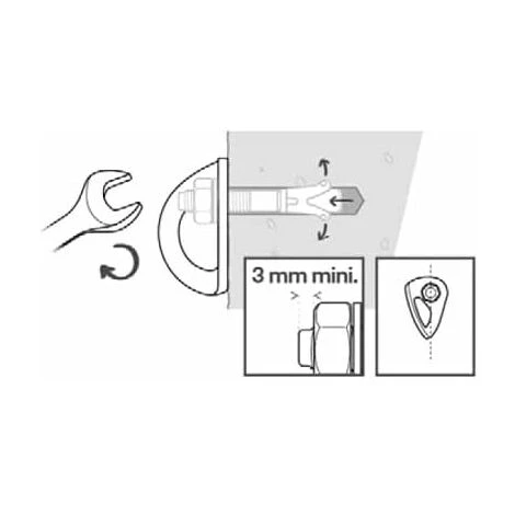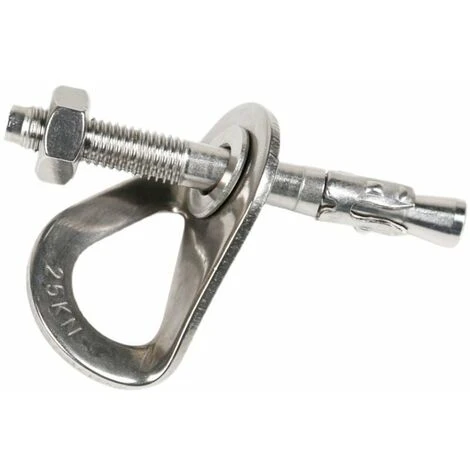 Piastra di sospensione per punti di ancoraggio permanenti. Occhiello di fissaggio progettato per due moschettoni, massima resistenza al carico: 25KN.