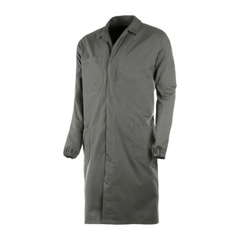 Camice con 3 pratiche tascheCamice da lavoro grigio con chiusura con bottoni automatici coperti per permettere di toglierlo e metterlo velocemente. Le 3 pratiche tasche sono perfette per avere a portata di mano oggetti personali e attrezzi da lavoro. L’elastico ai polsi previene impigliamenti accidentali.Questo camice è disponibile anche in blu, beige e bianco..