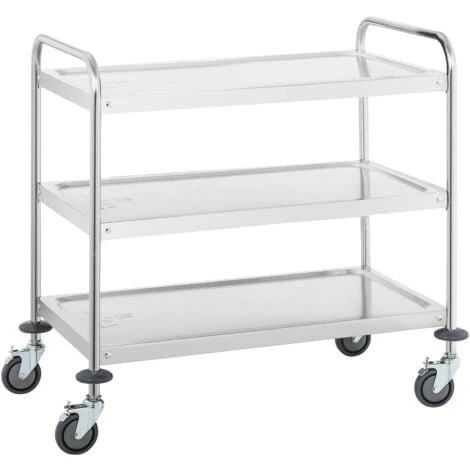 Il Carrello di servizio in acciaio inox RCSW-3R di Royal Catering è stato progettato le esigenze professionali nell’ambito del settore gastronomico. Il Carrello di servizio in acciaio inox RCSW-3R misura 95 x 54 x 15,5 cm e pesa 15 Kg. Il carrello di servizio convince grazie a tre piani di appoggio in acciaio inox rafforzato, i quali permettono di raggiungere una portata massima pari a 150 kg. Inoltre questo prodotto è estremamente facile da pulire in pochi secondi. Il carrello di servizio è molto versatile: puó infatti essere impiegato negli ambiti piú diversi, ad esempio nelle grandi cucine di ristoranti, pub, nelle mense o nelle gastronomie e pasticcerie. Acquista il Carrello di servizio RCSW-3R di Royal Catering a prezzo ridotto.
