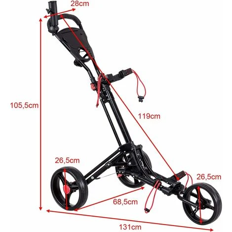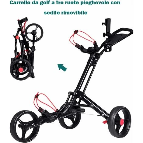 Facile da conservare e trasportare: Questo carrello da golf si può piegare velocemente in pochi passi e conservarlo facilmente quando non lo si usa. Inoltre, la dimensione pieghevole è perfetta per riporlo nel baule della macchina e trasportarlo ovunque.