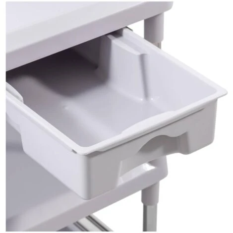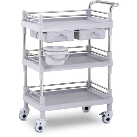 Ti piace non perdere di vista le tue cose e avere tutta la tua attrezzatura a portata di mano? Che si tratti di treppiedi, provette, liquidi o salviette di carta, la tua attrezzatura è sempre ben organizzata sul carrello con tre ripiani e due cassetti. Usa gli scaffali dello spazioso carrello dalle dimensioni di 53 x 38 x 14 cm per riporre gli oggetti e averli sempre a portata di mano. La bordatura impedisce che le cose cadano inavvertitamente dallo scaffale. Allo stesso tempo, un lato è aperto per prendere e posare facilmente gli oggetti di cui hai bisogno. Troverai ulteriore spazio di archiviazione nei due cassetti di 18 x 35 x 8 cm. Puoi trasportare tutto in sicurezza e comodamente su quattro ruote con due freni. Usa il carrello da laboratorio di Steinberg Systems!