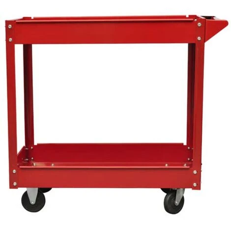 Strumento ideale per avere i vostri utensili da officina sempre a portata di mano, con due ripiani in grado di supportare un carico che può raggiungere i 100kg. Potrete utilizzare il carrello per riporre e trasportare gli attrezzi nel vostro garage o nella vostra officina. Il carrello è stato realizzato in acciaio laccato. Due delle sue ruote possono essere bloccate e le altre due rimanere girevoli. Il carrello porta attrezzi è inoltre provvisto di una comoda maniglia per spostarlo con facilità.
