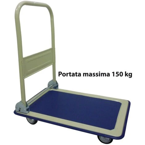 Carrello portapacchi in acciaio con 4 ruote e manico pieghevole portata 150 kg