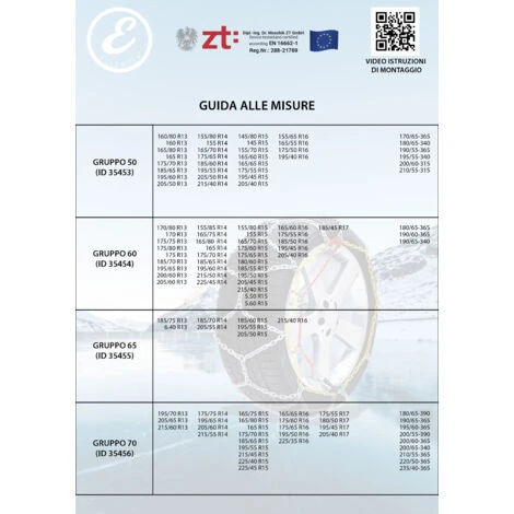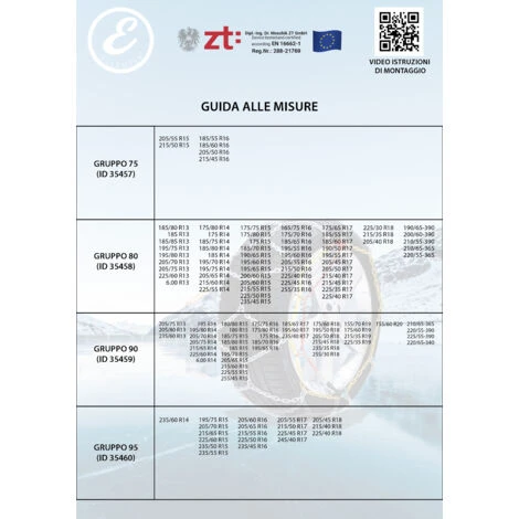 – Compatibile con le misure: 195/75 R15 – 205/70 R15 – 215/65 R15 – 225/60 R15 – 255/60 R15 – 235/55 R15 – 205/60 R16 – 215/55 R16 – 225/50 R16 – 215/50 R17 – 225/45 R17 – 215/40 R18