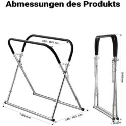 Il cavalletto ha una solida costruzione tubolare in acciaio, parzialmente rivestita in schiuma per assicurare una tenuta antiscivolo e proteggere i rivestimenti delicati.