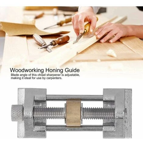 Guida per affilare Comsmart – Acciaio inossidabile – Morsetto laterale – Angolo fisso – Con rullo in ottone per affilare forbici, legno, ferri da pialla, scalpelli piatti, ferri da pialla.