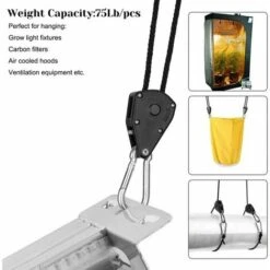 – Capacità di carico di 150 libbre Cricchetto da 2 pezzi, ganci regolabili da 1/8 di pollice per appendere luci di coltivazione, apparecchi alti, sacchetti di orpelli e apparecchiature di ventilazione.