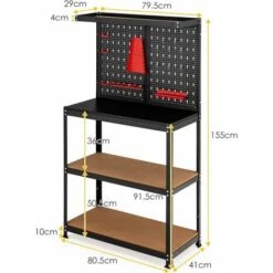 Conservazione multifunzionale: Questo banco da lavoro è dotato di molteplici spazi di archiviazione, tra cui il ripiano superiore, 2 pareti forate, un ampio piano d’appoggio e 2 ripiani aperti, che offrono uno ampio spazio di archiviazione.