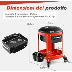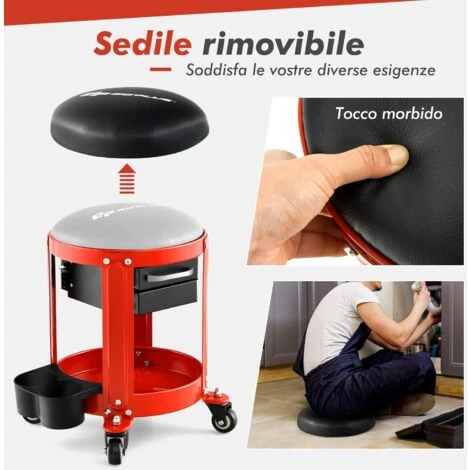 - Tenere gli Strumenti a Portata di Mano : Questo sgabello meccanico rotante comprende 2 cassetti in due direzioni, ripiano e un vassoio in plastica rimovibile.